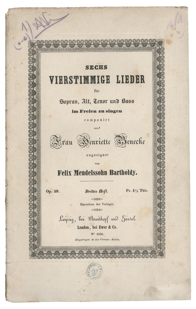 Sechs vierstimmige Lieder für Sopran, Alt, Tenor und Bass im Freien zu singen, 3. Heft