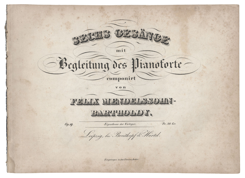 SECHS GESÄNGE / mit / Begleitung des Pianoforte / componirt / von / FELIX MENDELSSOHN- / BARTHOLDY. / Op.19.