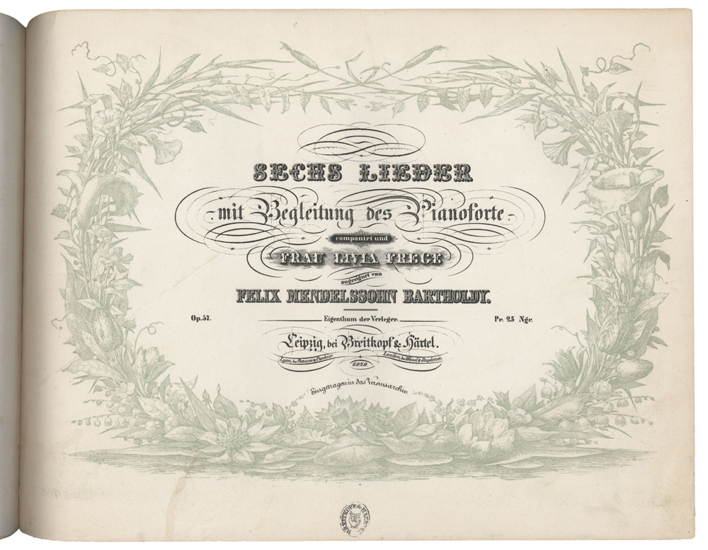 SECHS LIEDER / mit Begleitung des Pianoforte / componirt und / FRAU LIVIA FREGE / zugeeignet von / FELIX MENDELSSOHN BARTHOLDY. / Op.57.