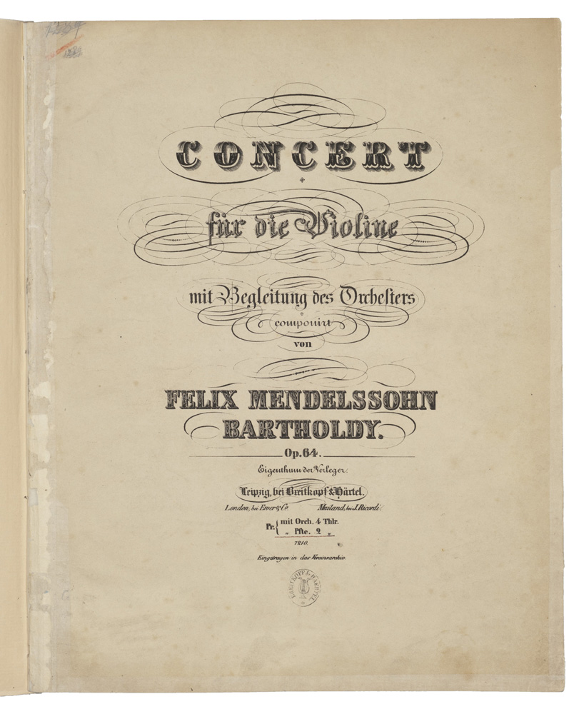 CONCERT / für die Violine / mit Begleitung des Orchesters / componirt / von / FELIX MENDELSSOHN / BARTHOLDY. / Op.64.