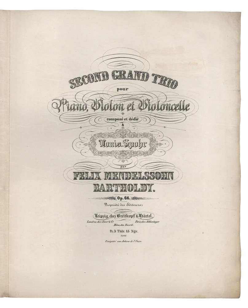 SECOND GRAND TRIO / pour / PIANO, Violon et Violoncelle / composé et dedié / À / Louis Spohr / par / FELIX MENDELSSOHN BARTHOLDY. / Op. 66.