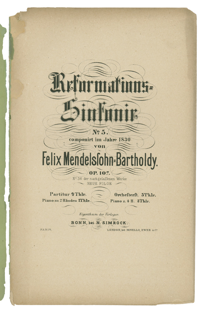 Reformations- / Sinfonie / N°. 5. / componirt im Jahre 1830 / von / Felix Mendelssohn-Bartholdy. / OP. 107. / N°. 36 der nachgelassenen Werke / NEUE FOLGE