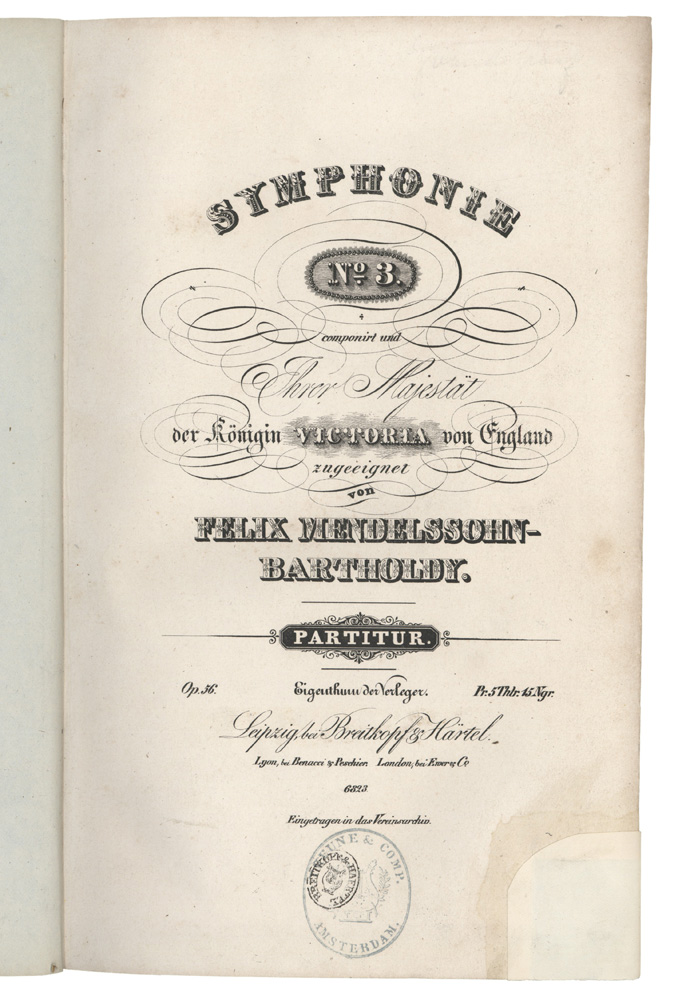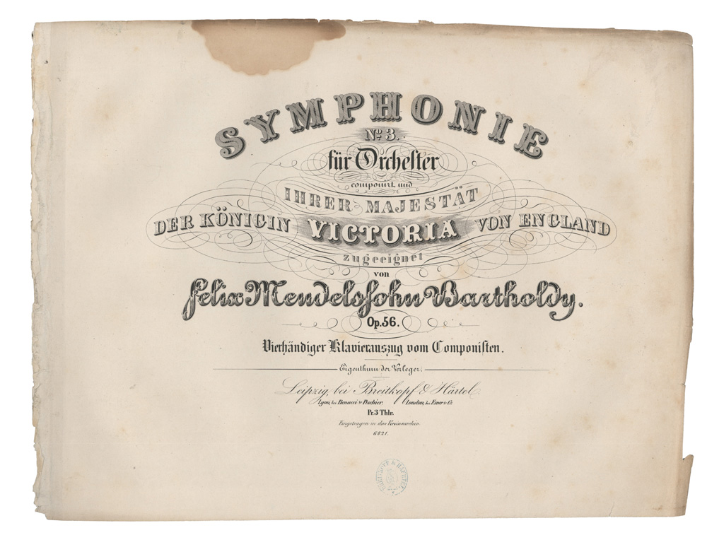 SYMPHONIE / N°. 3. / componirt und / IHRER MAJESTÄT / der Königin VICTORIA von England / zugeeignet / von / FELIX MENDELSSOHN- / BARTHOLDY. / PARTITUR / Op.56.