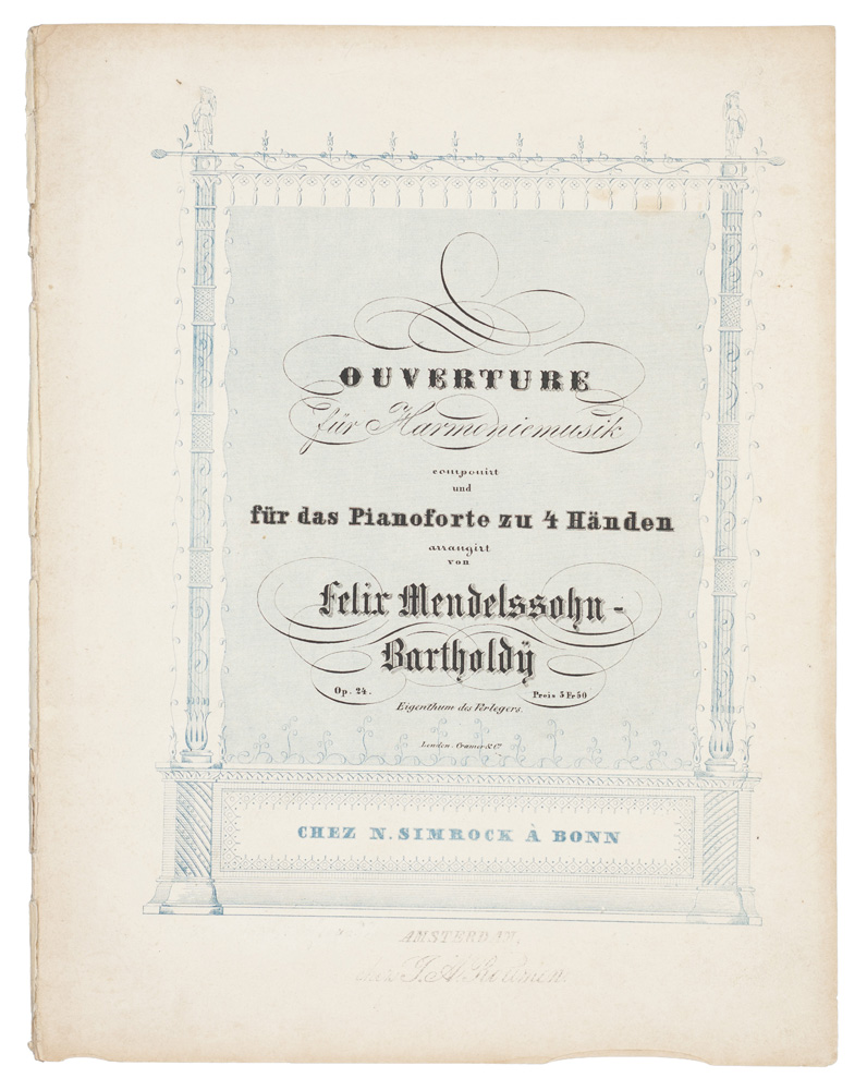 OUVERTURE / für Harmoniemusik / componirt / und / für das Pianoforte zu 4 Händen / arrangirt / von / Felix Mendelssohn - / Bartholdÿ / Op. 24.