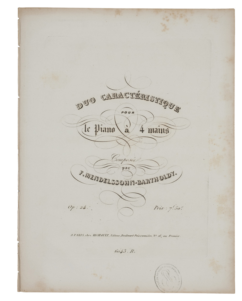 DUO CARACTÉRISTIQUE / POUR / le Piano à 4 mains / Composée / par / F. MENDELSSOHN BARTHOLDY. / Op : 24.