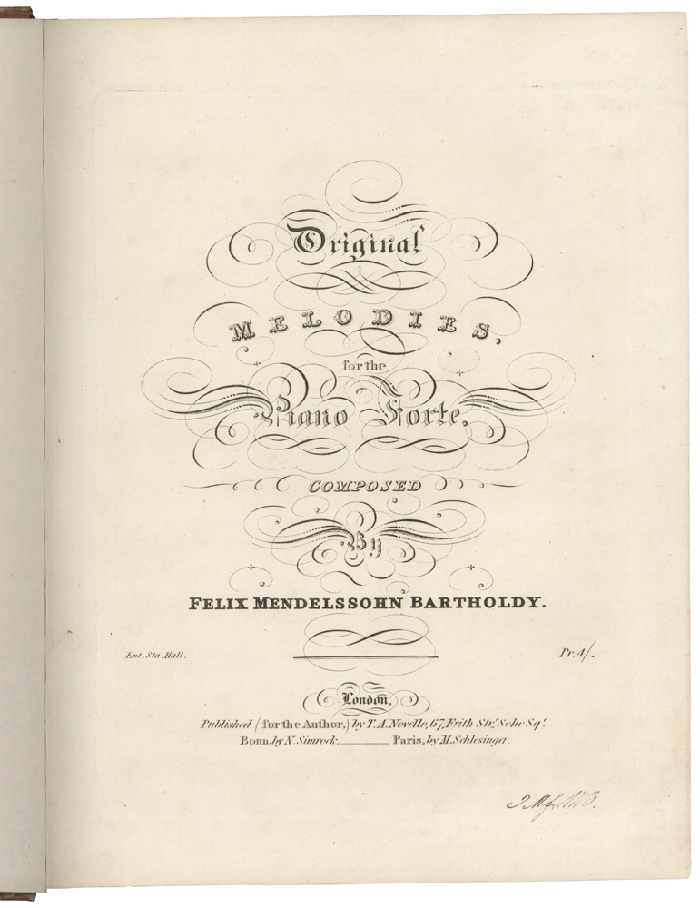 Original / MELODIES, / for the / Piano Forte, / COMPOSED / By / FELIX MENDELSSOHN BARTHOLDY.