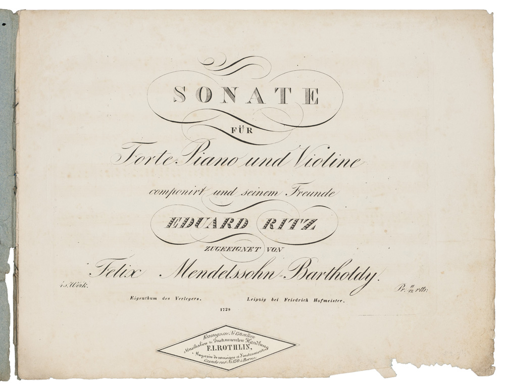 SONATE / FÜR / Forte Piano und Violine / componirt und seinem Freunde / EDUARD RIETZ / ZUGEEIGNET VON / Felix Mendelssohn-Bartholdy. / 4 s. Werk.