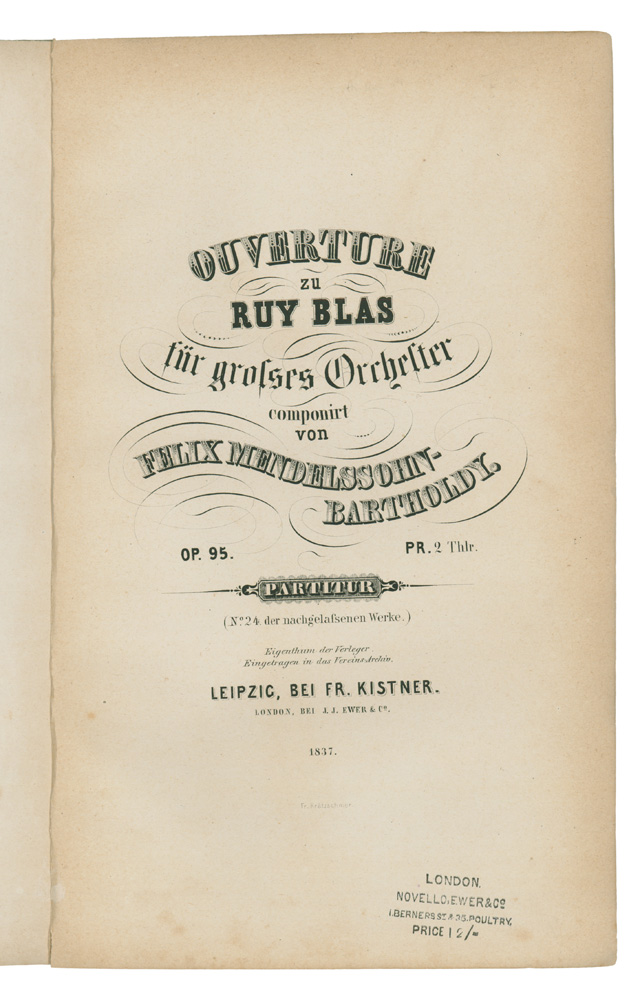 OUVERTURE / zu / RUY BLAS / für / grosses Orchester / componirt / von / FELIX MENDELSSOHHN- / BARTHOLDY. / [links:] OP.95 / PARTITUR / (N°. 24 der nachgelassenen Werke.)